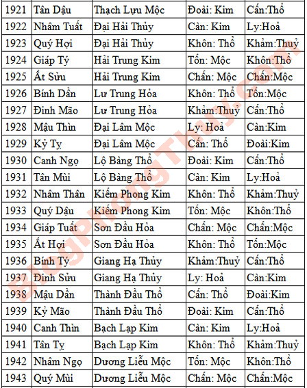 – Mệnh cung Càn, Đoài, thuộc hành Kim.Màu sắc hợp: Màu vàng, nâu, thuộc hành Thổ (tương sinh, tốt). Màu trắng, bạc, kem, thuộc hành Kim (tương vượng, tốt). Màu sắc kỵ: Màu đỏ, màu hồng, màu cam, màu tím, thuộc hành Hỏa , khắc phá mệnh cung hành Kim, xấu.