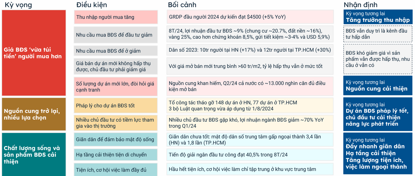 Theo nhận định từ DKRA và VARS, trong 6 tháng cuối năm 2024, nguồn cung bất động sản, đặc biệt là phân khúc căn hộ, có khả năng phục hồi nhẹ nhờ một loạt dự án mới sẽ được ra mắt tại TP. Hồ Chí Minh và các khu vực lân cận như Bình Dương, Đồng Nai. Tuy nhiên, mức độ tăng trưởng nguồn cung sẽ không đủ để làm hạ nhiệt thị trường. Giá nhà, đặc biệt là ở phân khúc cao cấp, dự kiến sẽ tiếp tục duy trì đà tăng trưởng do sự khan hiếm quỹ đất và nhu cầu đầu tư cao.